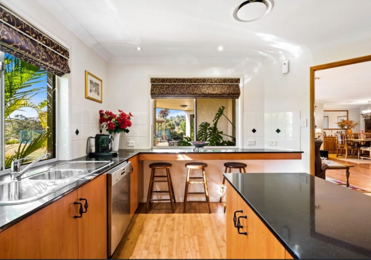 - Large kitchen with Miele appliances, stone top benches, breakfast bar and lots of storage and bench space